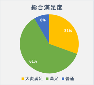 参加者の総合満足度は「大変満足」「満足」をあわせて92%、「不満」「大変不満」と回答した人は0人でした。自由記述でも「来場者が多くいろいろな情報交換を行うことができ、他事業者の取り組みも参考になった」、「予想以上にブースに寄って頂き、興味をしめしていただいたので良かった」、「昨年に比べて交流の時間を長く取ってあったので、企業間の繋がりを広げるきっかけになった」などの回答がありました。