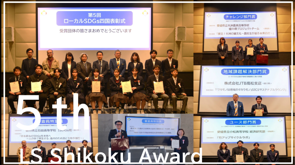 ローカルSDGs四国表彰受賞者紹介 第5回 受賞者紹介 2026年2月13日(金)に、情報通信交流館e-とぴあ(高松市)で表彰式が開催されました! 第4回 受賞者紹介 2025年2月20日(木)に、情報通信交流館e-とぴあ(高松市)で表彰式が開催されました! 第3回 受賞者紹介 2024年2月22日(木)に、情報通信交流館e-とぴあ(高松市)で表彰式が開催されました! 第2回 受賞者紹介 2023年2月22日(水)に、情報通信交流館e-とぴあ(高松市)+オンラインで表彰式が開催されました! 第1回 受賞者紹介 2022年2月12日(土)にオンライン表彰式が開催されました!